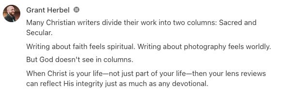 You see, I’ve found that Notes are the key to discoverability on this platform—and using them is less like shouting through a megaphone and more about the “ministry of the small.” It’s about offering a cup of cool water to the reader who only has thirty seconds to spare.
